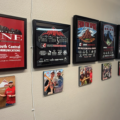 The walls of Grow Chiropractic are lined with memories of past adventures during Find the Spine. Photos by Ty Gant.
